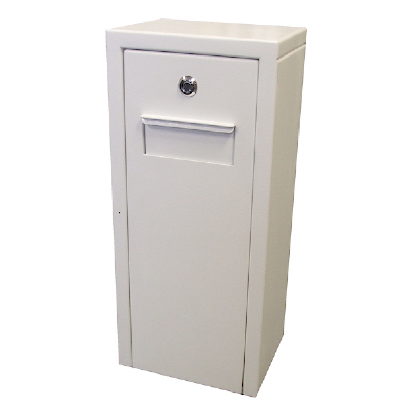 - All sharps bin cabinets / key return boxes are manufactured from tough 2.0mm thick mild steel.