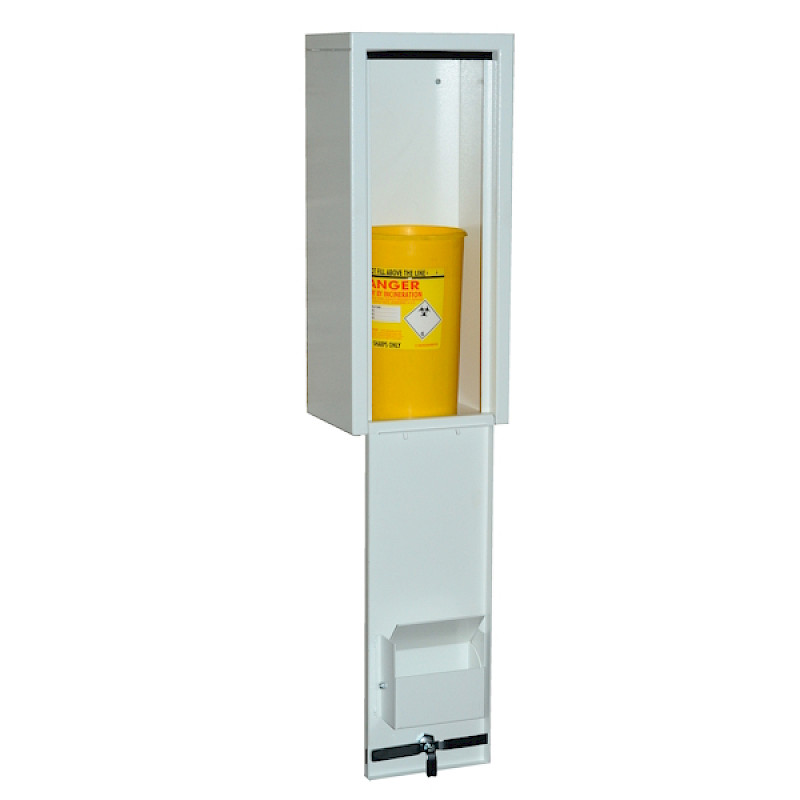 - Internal clearance dimensions of the sharps anti vandal cabinet allow to fit one 5 litre plastic burn bin inside (not supplied)